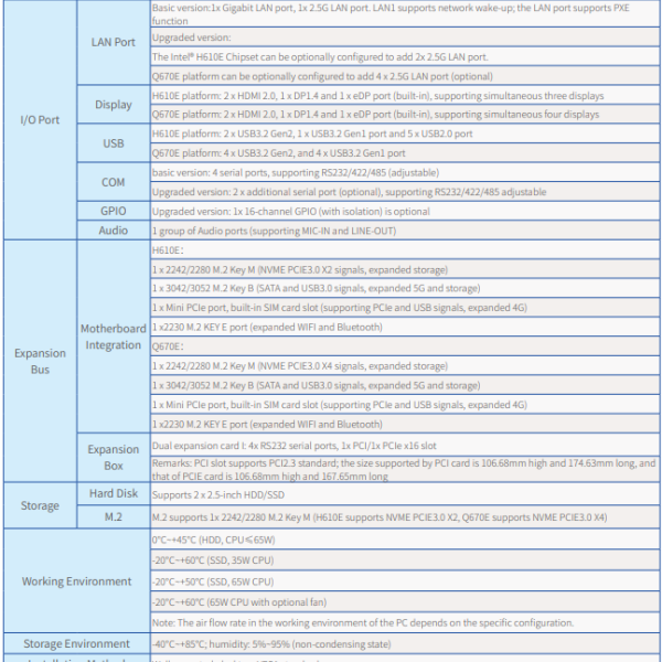 M60A 6~9th Gen i3/i5/i7/J1900 Low-power and High-Performance Fanless Embedded System