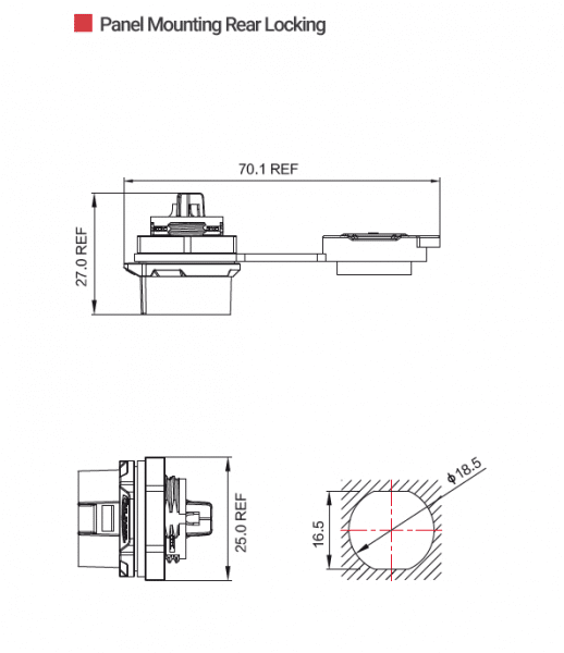LP24 500V 25A 3Pin Male Socket IP67 Waterproof Power Connector Nut Behind