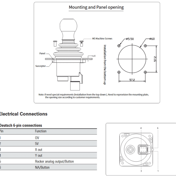 HJ8 Series Hall Affect Multi Axis Industrial Joystick with CAN BUS Output