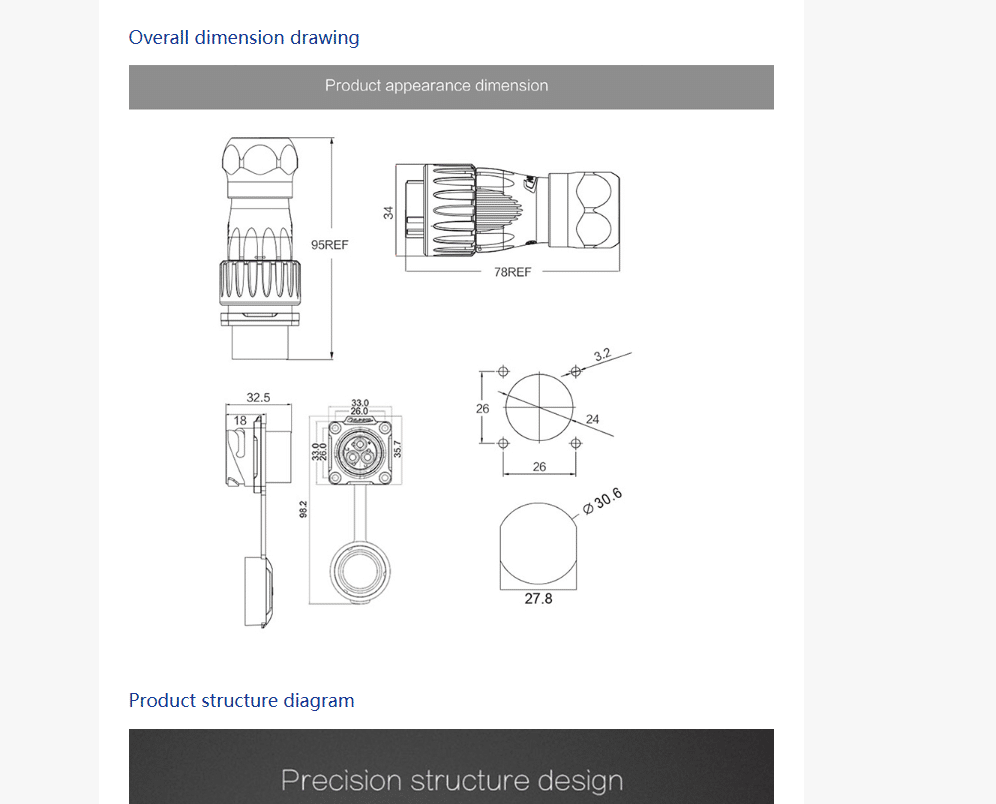 DH-24-4 pin circular four-hole waterproof aviation connector 25A,500V