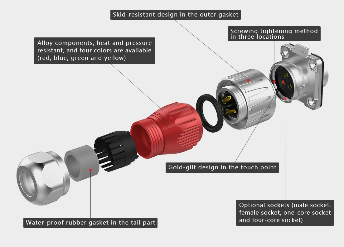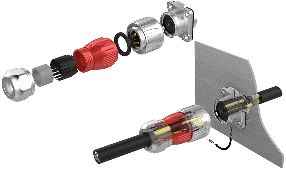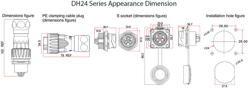 The Cnlinko DH-24-C24SX-03-401A is a 24 pin M24 male socket for signal applications. Accommodates 20 AWG cable. Rated for 250V and 5 A. Ideal for applications such as LED displays, industrial equipment, and stage lighting equipment.