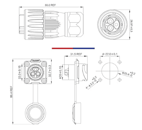 کانکتور 3 پین تغذیه صنعتی قفل شونده ضد آب مدل DH24 ( ست کامل)