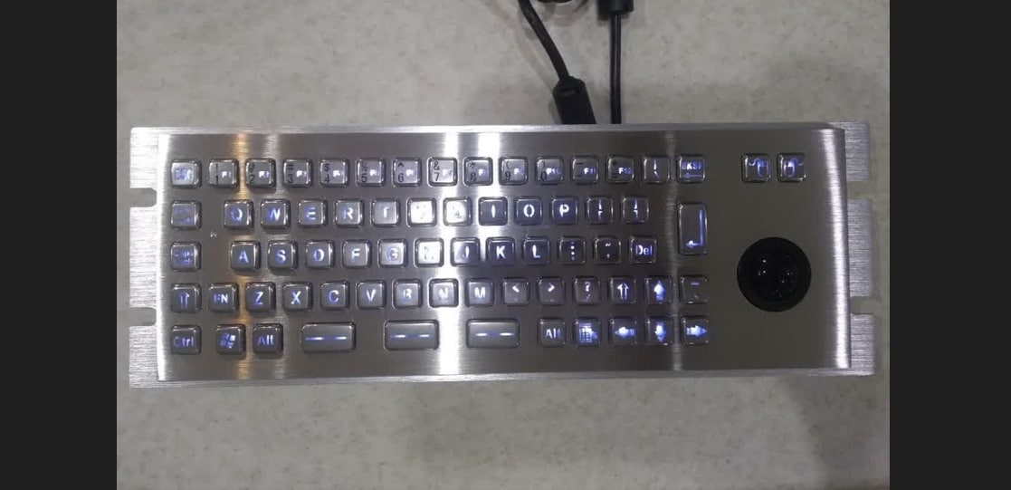 کیبرد صنعتی ضد ضربه IP65 به همراه ترکبال و نور پس زمینه ،سایز 101*288 میلیمتر