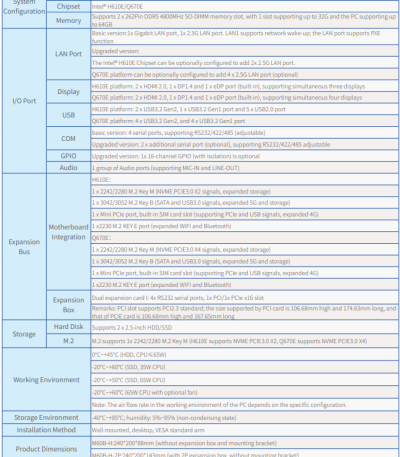 M60B 12~13th Gen i9/i7/i5/i3 Low-power and High-Performance Fanless Embedded System